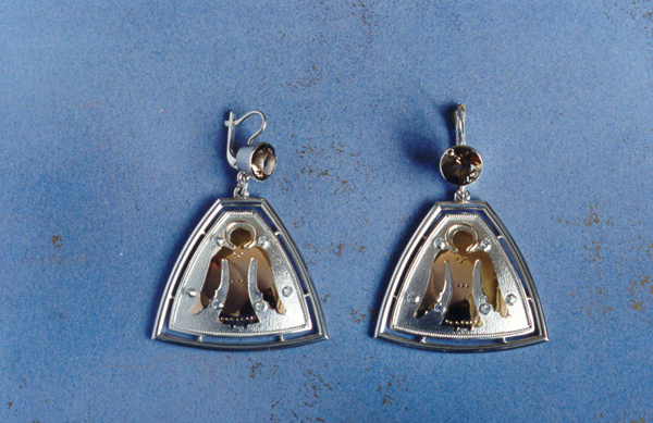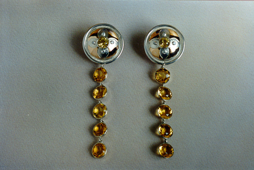 Серьги. 1996. Серебро, золото, цитрины, фианиты.