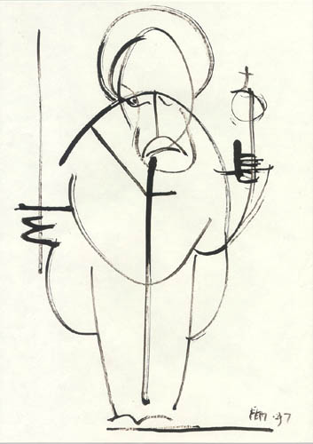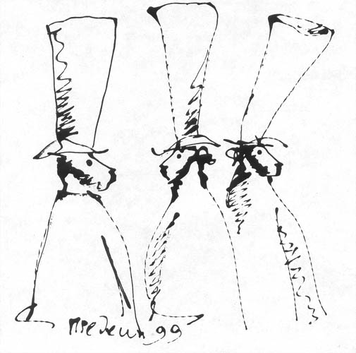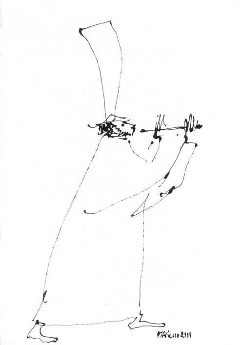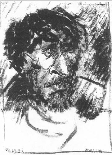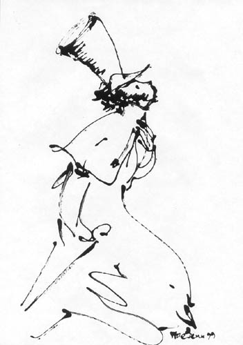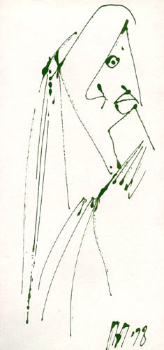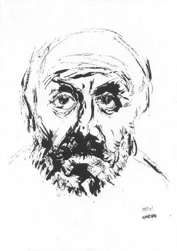 | | | Автопортрет, бум., тушь, 31*19, 1996г. собственность автора | |
