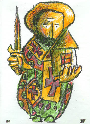 | | | Серия "Воины", бум., кар.граф., воск.кар.,31х19, 1997г. собственность автора | |