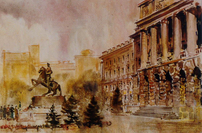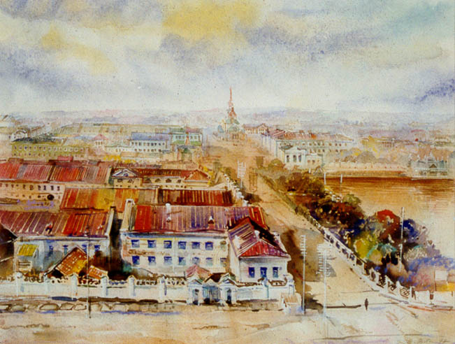 Views of Ekaterinburg. Ural Military Distric Headquarters. Paper, water colors. 21õ28 1995.