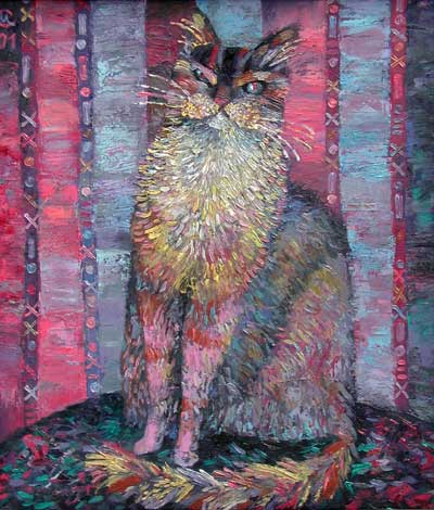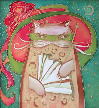кошка» креп, хол. батик, 52х48, 2001г. |